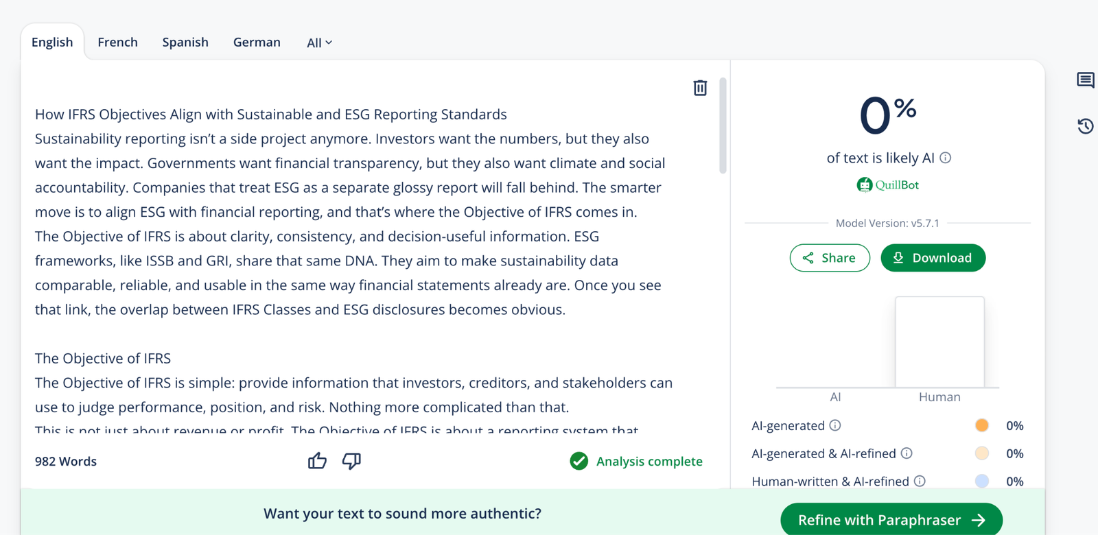 When ESG reporting fits into IFRS Classes, data gets structure. Investors see where risks and opportunities sit on the balance sheet and income statement. And that’s exactly what the Objective of IFRS demands – usable, comparable information.